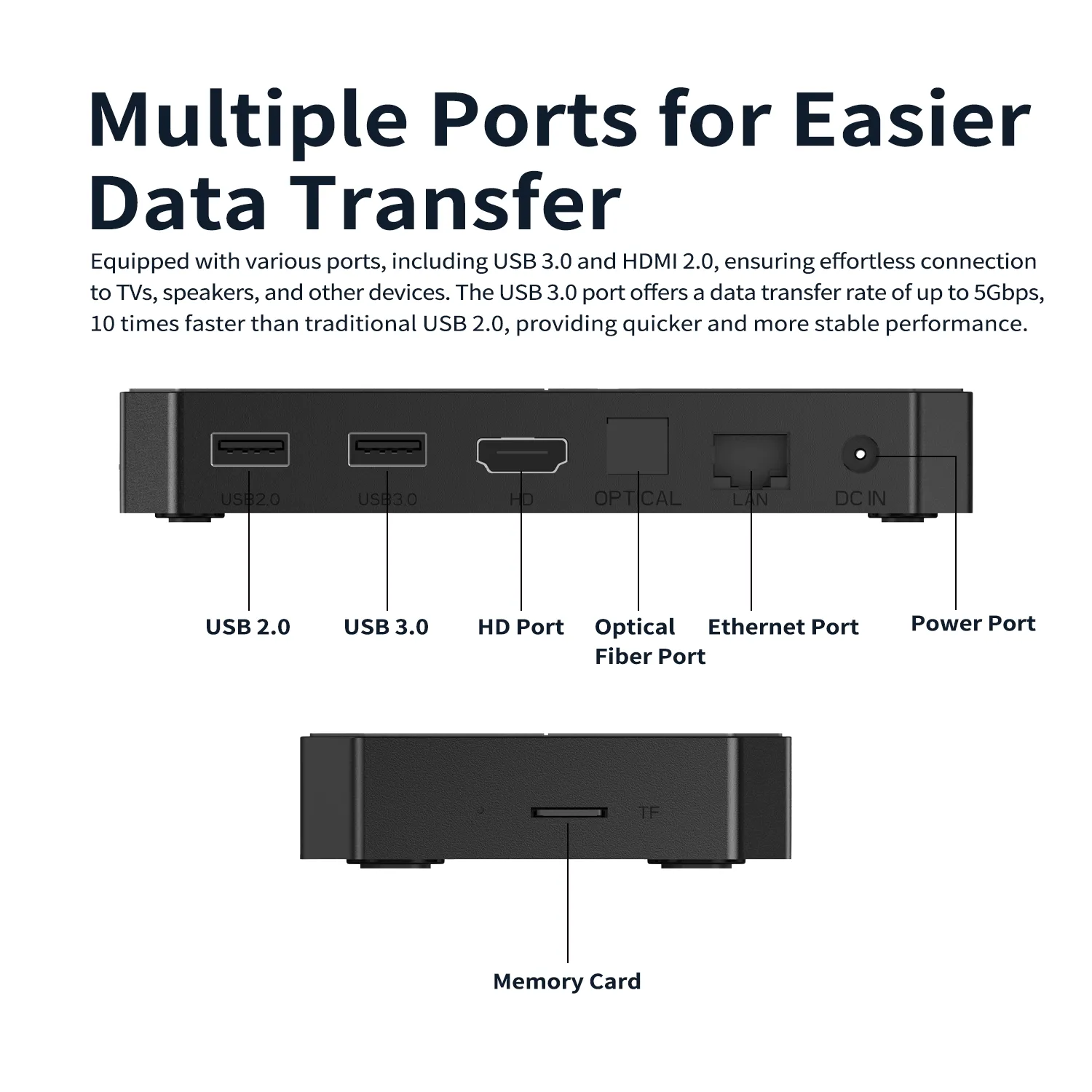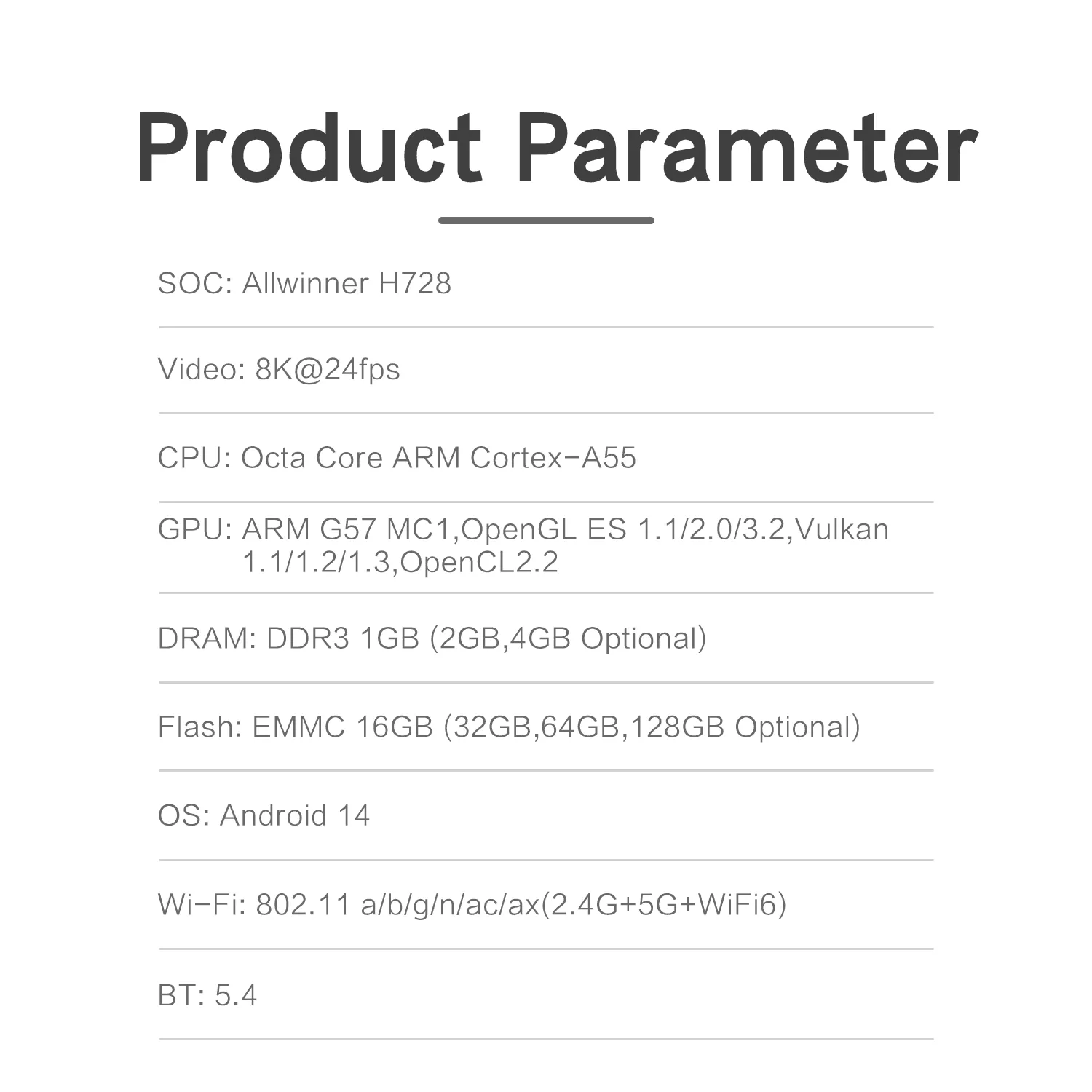 Powerful Performance: Allwinner H728 chip enables smooth multitasking and 8K@24fps decoding.