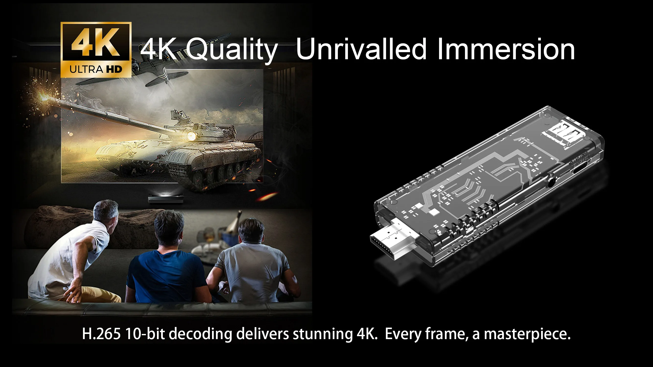 4K Ultra HD with H.265 10-bit decoding, stunning image quality.