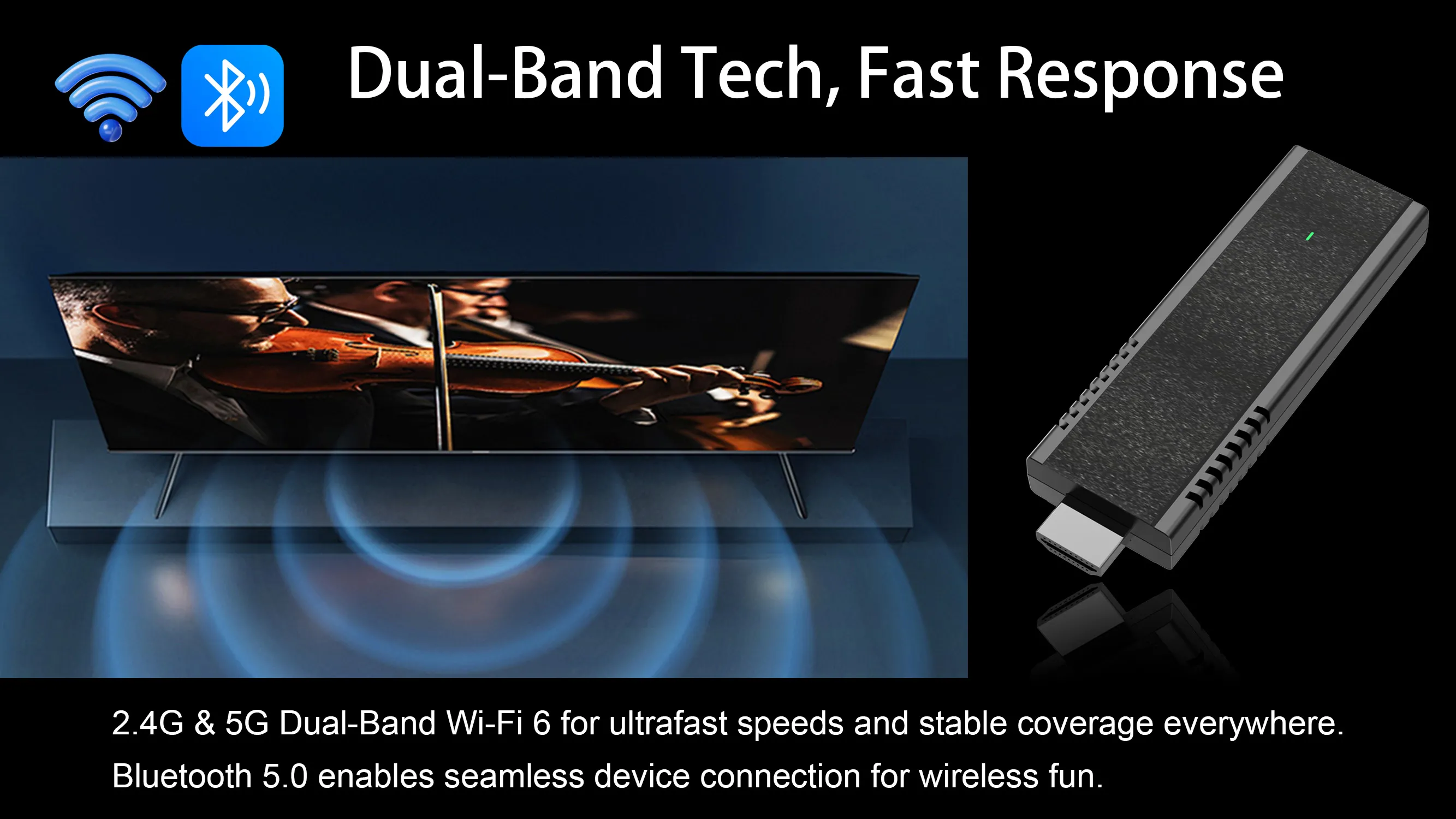 Fast & Stable Connectivity: Dual-band WiFi 6 (2.4G+5G) ensures high-speed, low-latency networking; HDMI 2.0 enables plug-and-play smart audio-visual experiences.
